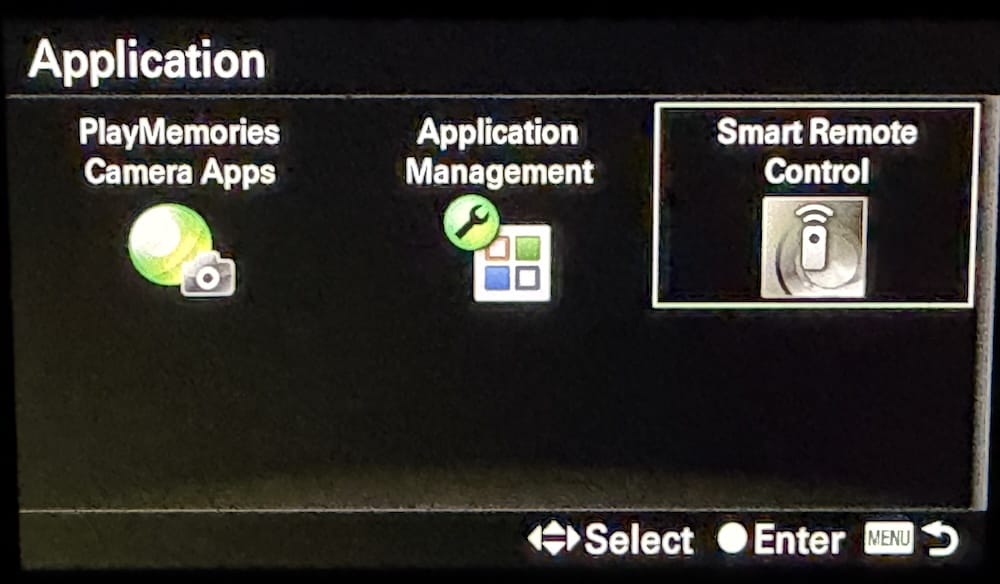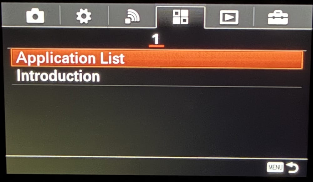 In the camera’s settings, go to the Applications tab and choose Application List.