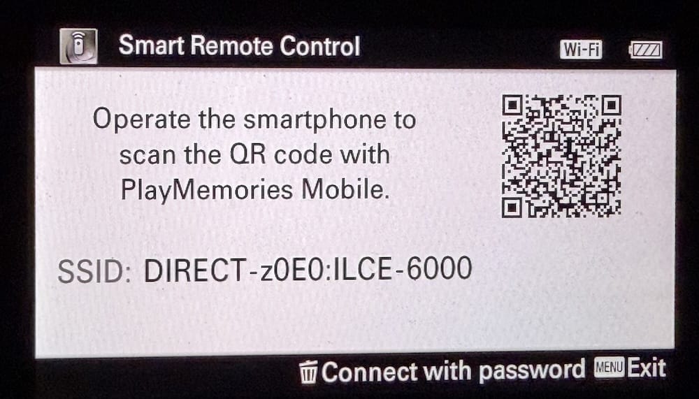 The camera will create a WiFi network that you can connect to. Press Connect with Password.