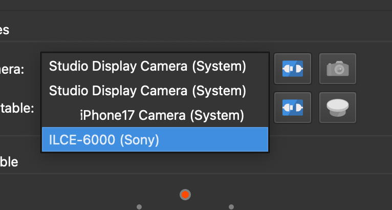 In Object2VR, click the Connect button and then choose the Sony camera in the list.