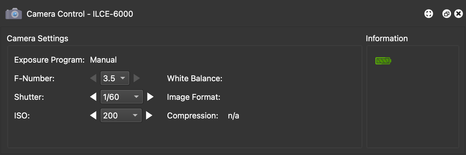 Connect the camera using the Connect button (blue plug icon). The Camera Control dialog will popup, giving you the option to set the exposure (and the plug icon will turn green).